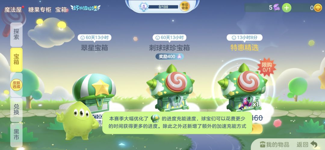 “环游波拉哩”新增每周挑战,完成相应任务可以获得翠星宝箱,帮助球宝加快升级!