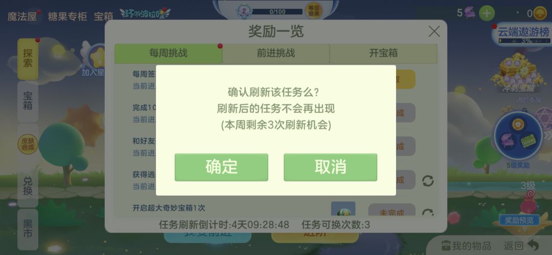 每周有三次刷新机会,球宝们要好好把握。等级提升更轻松了,但是奖励一点也没有少哦!