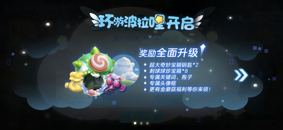 开通“环游波拉哩”通行证,宝箱充能速度将会进一步大幅度提升哦!还有超多专属奖励可以领取!
