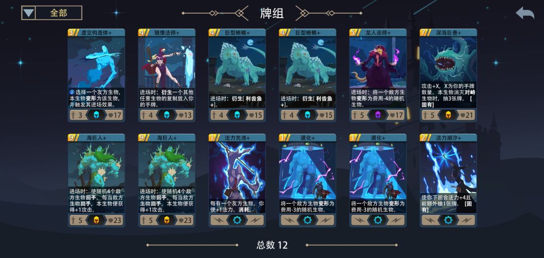 卡组只有12张,但在我心中还不够完美,最起码镜像法师得换成虚空构造体,龙人巫师没有必要存在,蜥蜴也是一只就够了,退化没啥作用主要拿来献祭