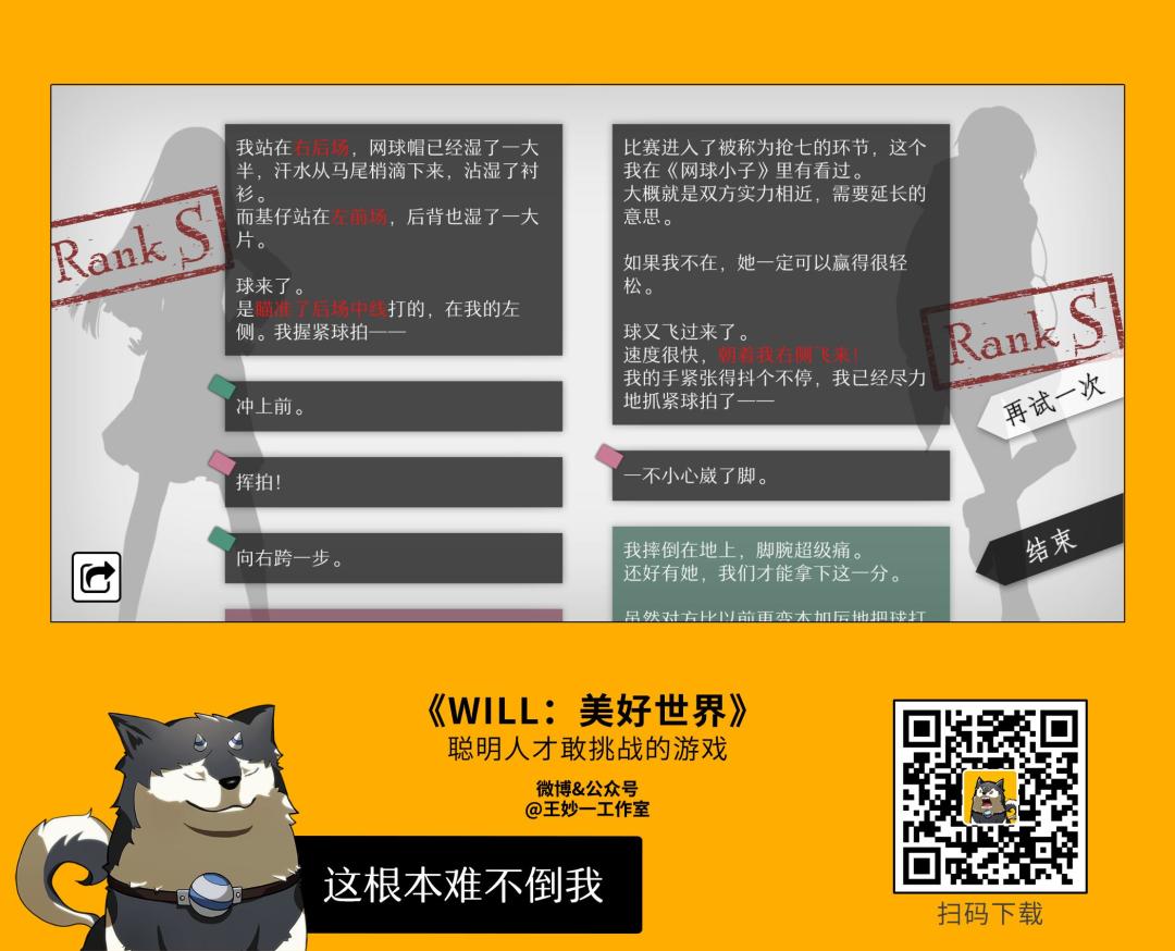 就像之前提到的那样,《美好世界》既然已经免费了,就希望大家都能来体验一下,玩的人越多我越开心。如果你体验后觉得眼前一亮,请把这个游戏也安利给身边的人,如果你体验后眼前一黑,那……祝你睡个好觉。