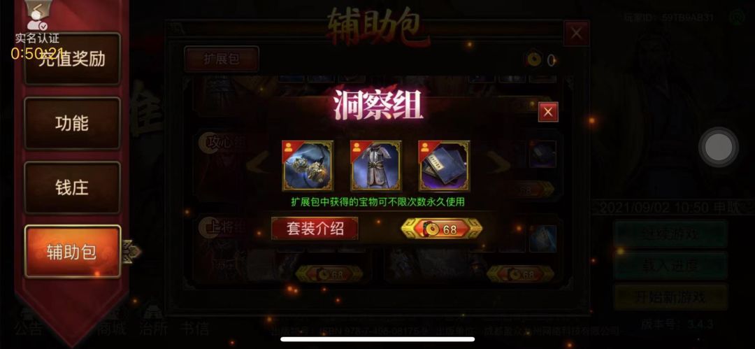 【洞察组 68元】戒备、金刚、洞察,这一组的话,主要是偏防御的,给一些智障或者军师加点保障,剧本里意义不是特别大,战役活动里倒是挺好用的,戒备免疫上将、金刚免疫暴击(变相免疫单挑)、洞察直接免疫控制(另外可以搭配上将技能,效果更好)
