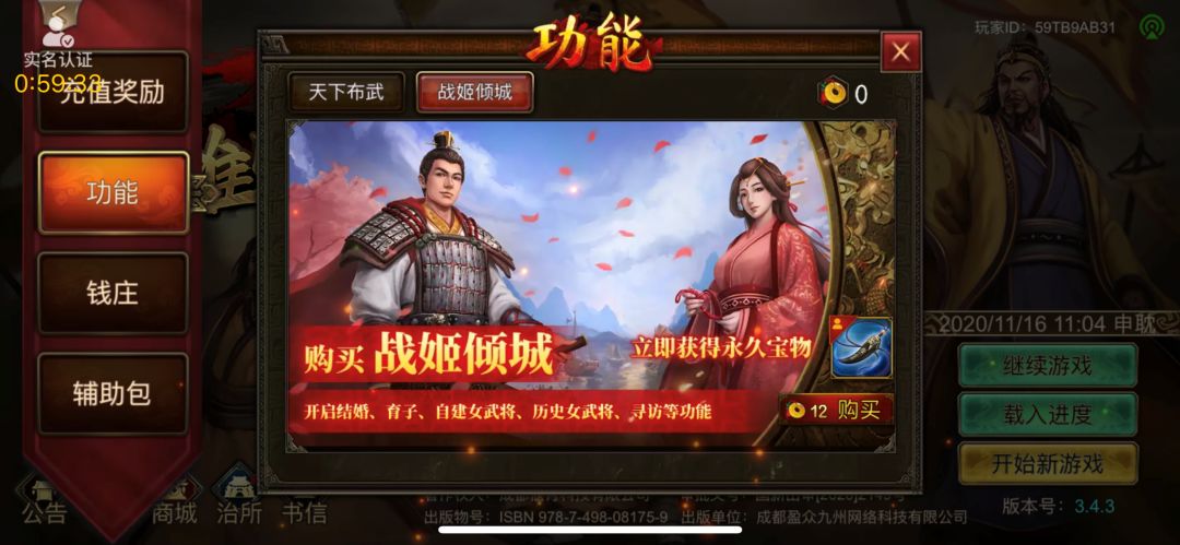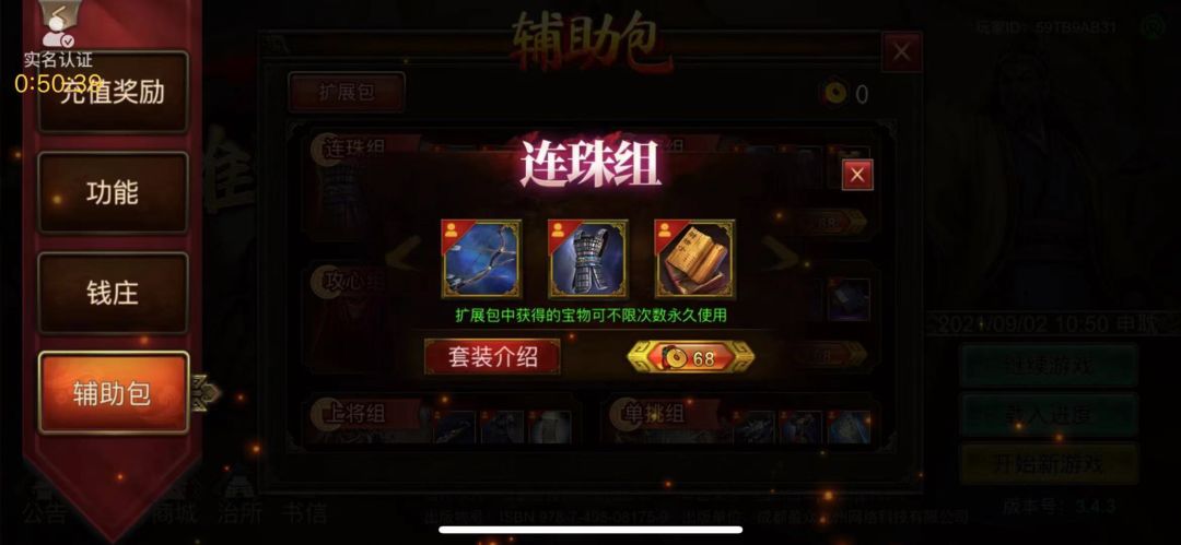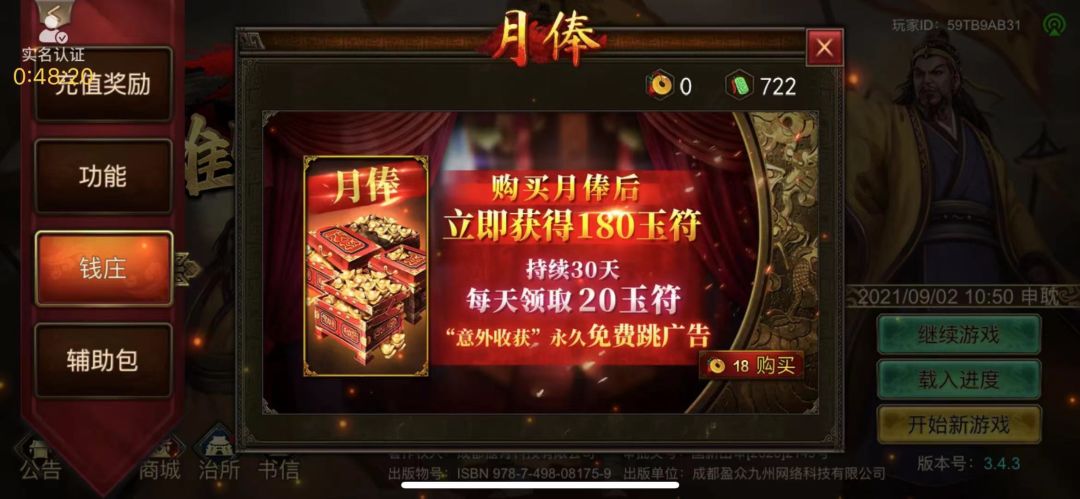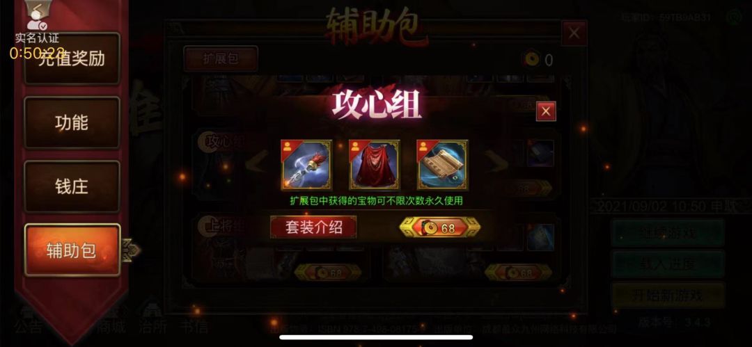 个人建议氪个【不朽功能 12元】+【姬战倾城 12元】的资料片(还送一个永久宝物),这两个功能开了,基本可以体验游戏的全部内容了,建议首冲30金玉,性价比最高,毕竟满30还可以跳过意外惊喜的广告~当然稍微有多点钱的也可以直接弄个【功能合集 30元】+【姬战倾城 12元】,毕竟打包一起可以便宜十几块,玩起来也会更舒服一点~