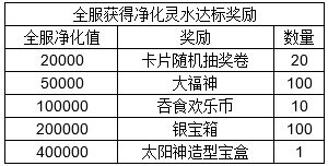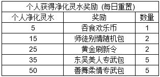 7. 每次增加「净化灵水」(个人计数),显示在福利→个人净化值,达指定数量即可领奖,个人净化值在活动结束前每日重置