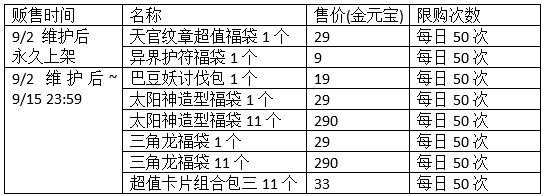 ‧太阳神造型福袋 30个600金元宝(原价870金元宝)