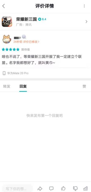 1.在《荣耀新三国》正式服“评价区”留下你关于游戏的经历或者故事、测试体验、游戏建议以及上线期待即可。