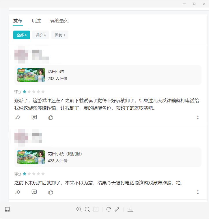 各位创造师:近期我们收到部分玩家反馈下载《花田小院》时接收到国家反诈骗中心打来的电话说游戏涉及诈骗,并提醒玩家卸载本款游戏。具体反馈如下图: