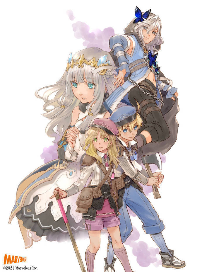 《符文工厂5》中文版于今日正式发售。为庆祝发售,人设岩崎美奈子老师绘制了包含主人公亚雷斯、亚丽丝,以及亚洲版人气投票票选出的碧翠丝和流卡四名角色的亚洲发售纪念插图。