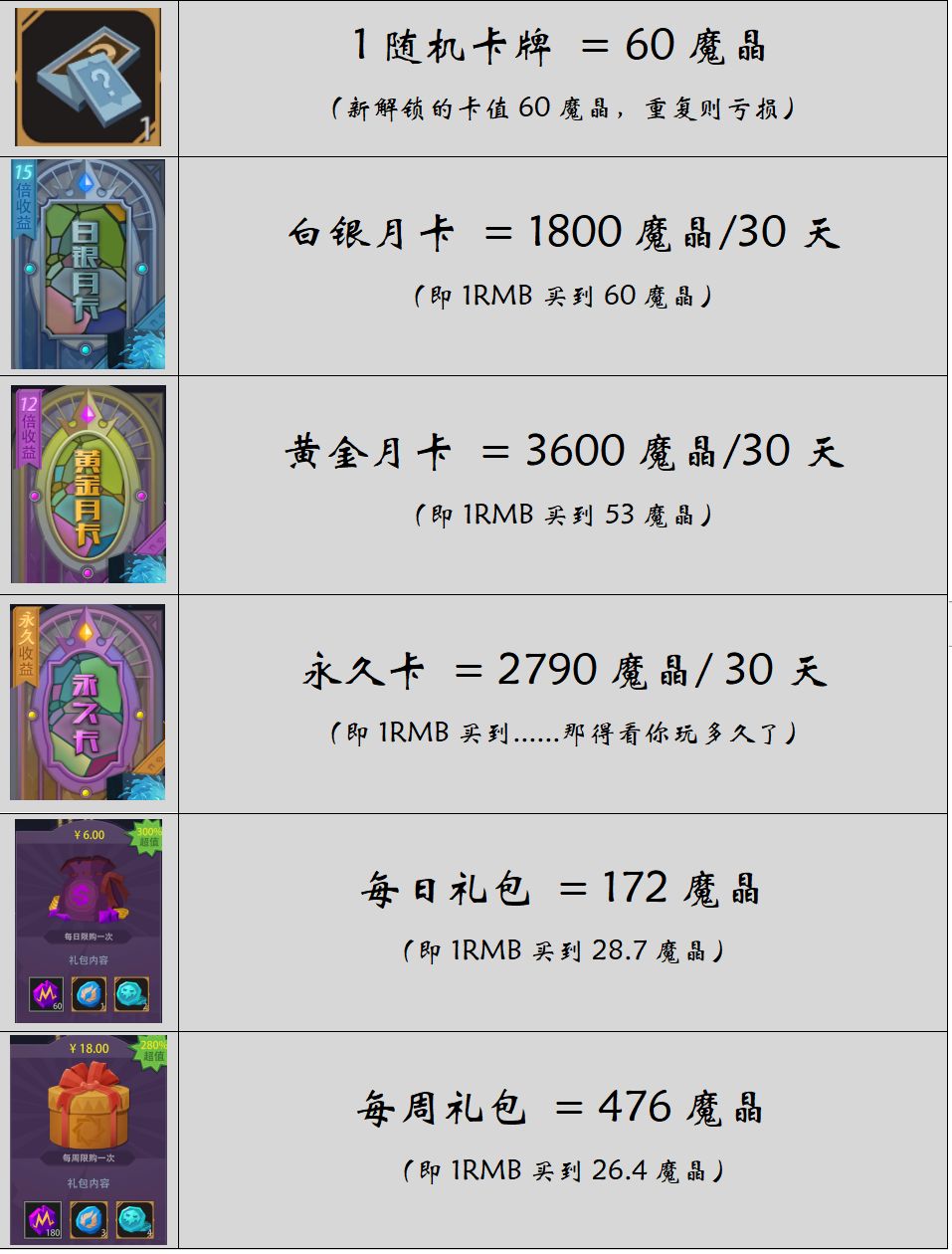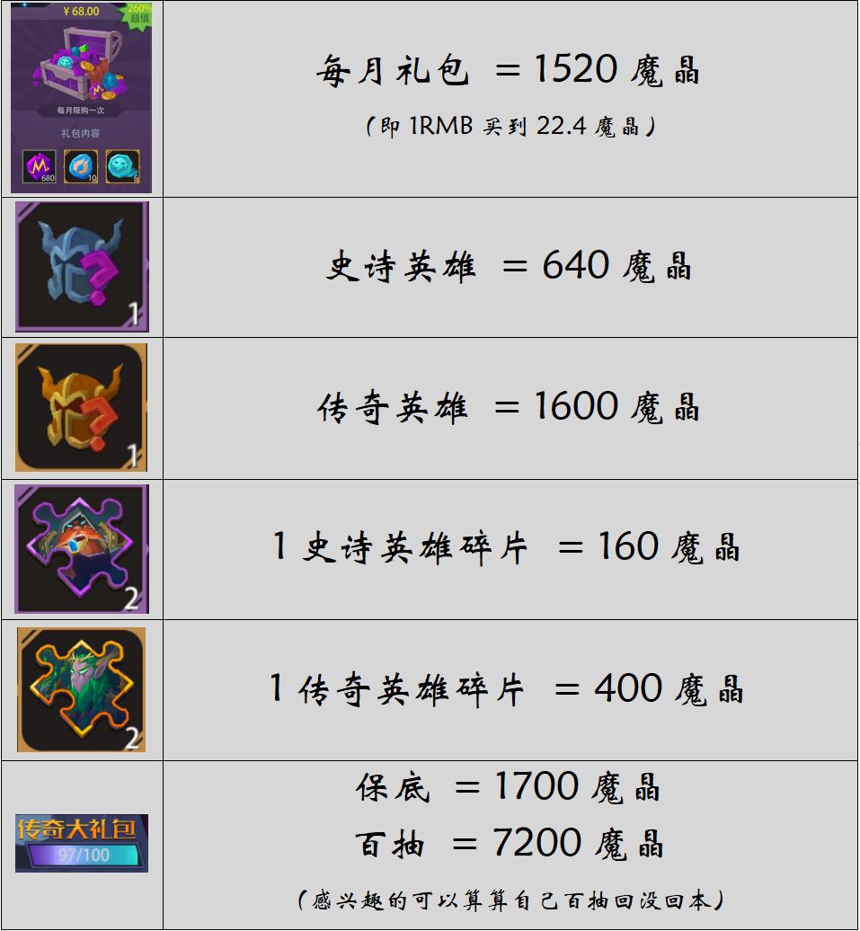 知道各位都是很细的人,帮大家伙归纳换算了部分物品的价格,氪金时可做参考