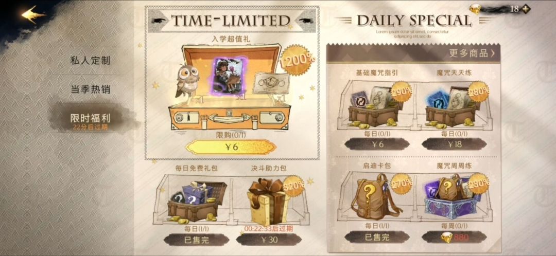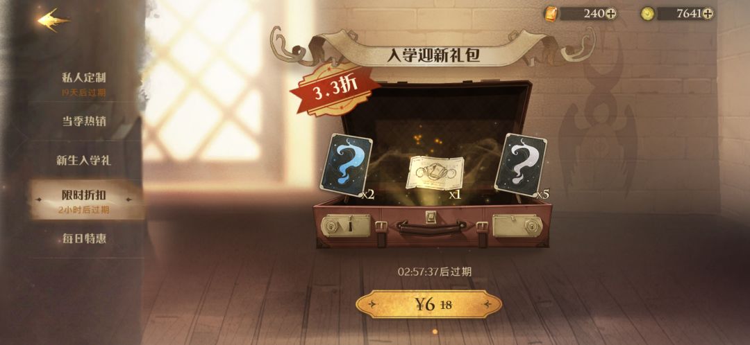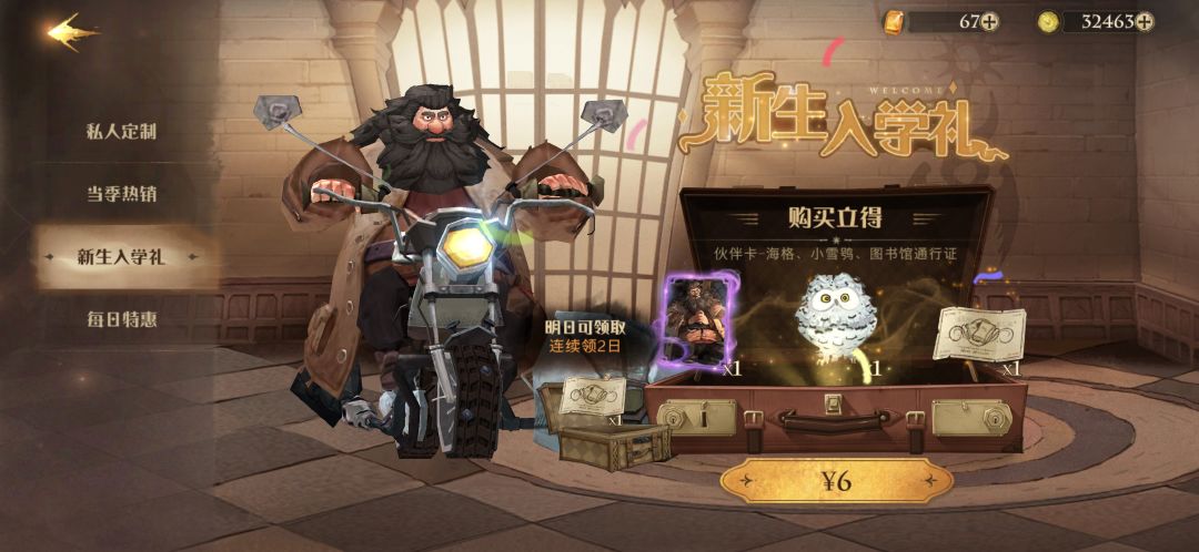 最后一测的“新生入学礼”依旧只要6元,礼包内包含:紫卡一张,猫头鹰一只,通行证三张。