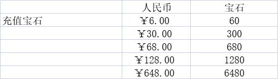 由于最后一测没有传统的首充奖励,所以rmb与宝石的比例为 1:10