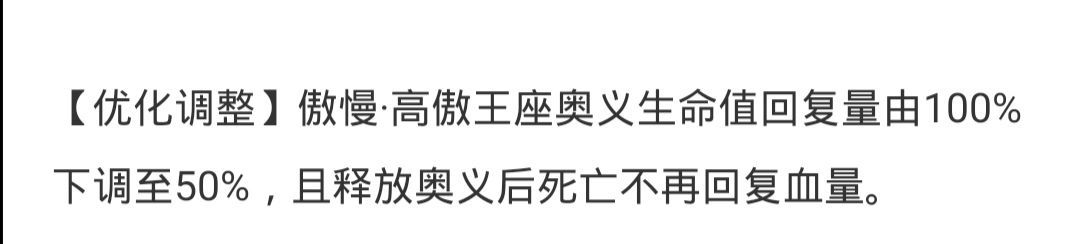 还有释放奥义后死亡不在回复血量这是个bug吧,特么傲慢都死了还能复活?玩我呢?这句话加在傲慢技能调整后面纯属误导人的