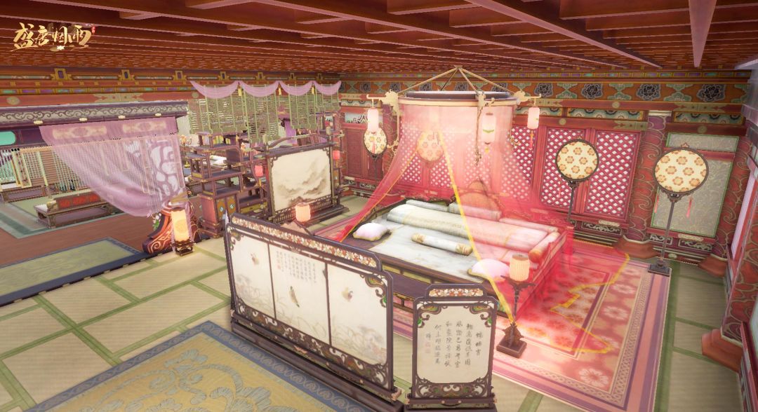 细心的糖宝会发现,咱们房屋上铺设了更精细的砖瓦,外墙更是翻新成了极具古调的红墙,贴上了花纹精美的窗纸,连花花草草都变好看啦。
