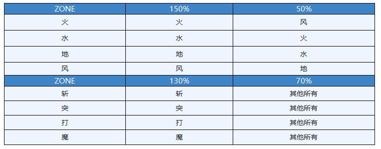5、在ZONE生效时,对应属性的技能会获得伤害提升,克制属性的技能伤害会获得下降。