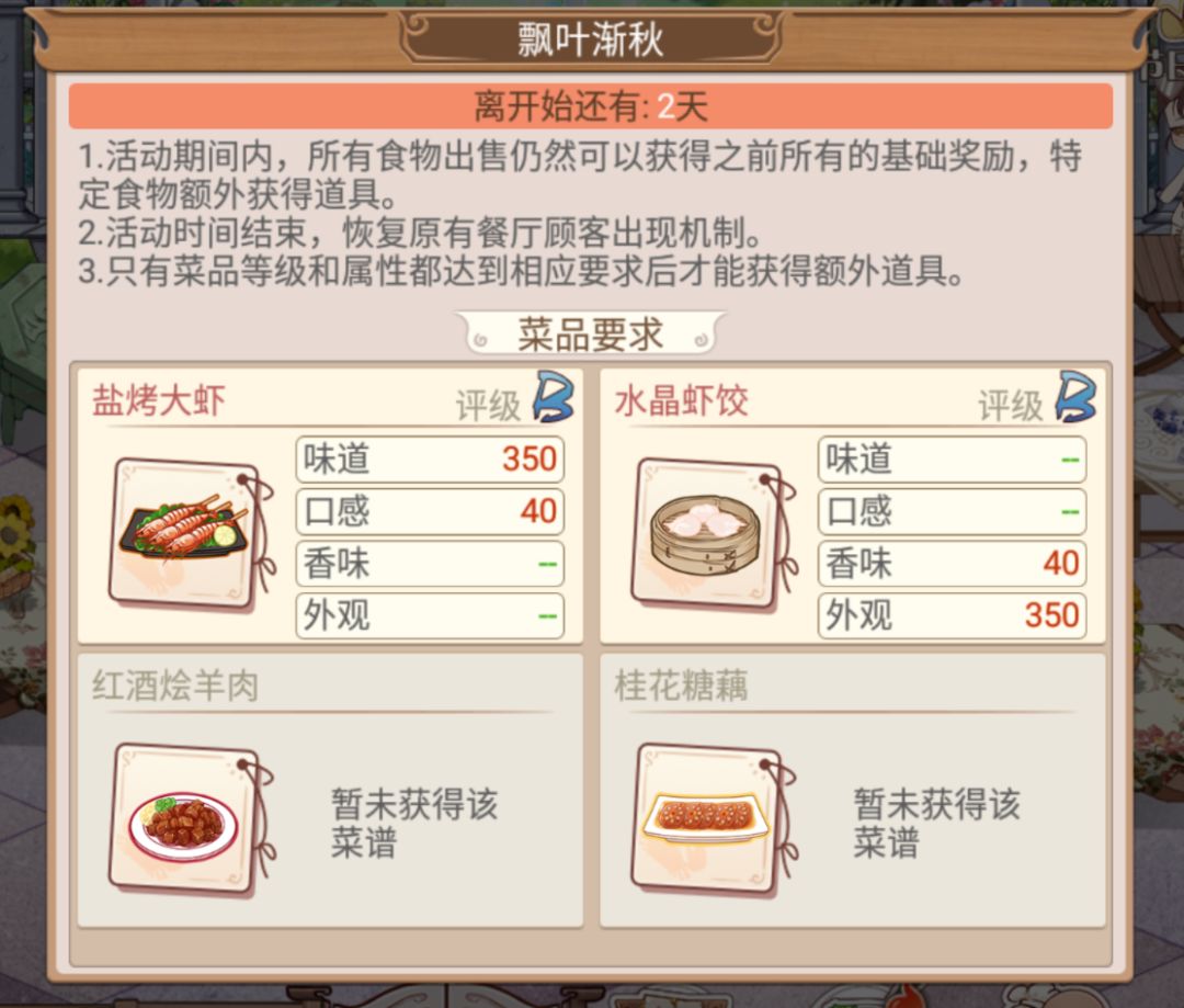 【飘叶渐秋】餐厅体力宝箱