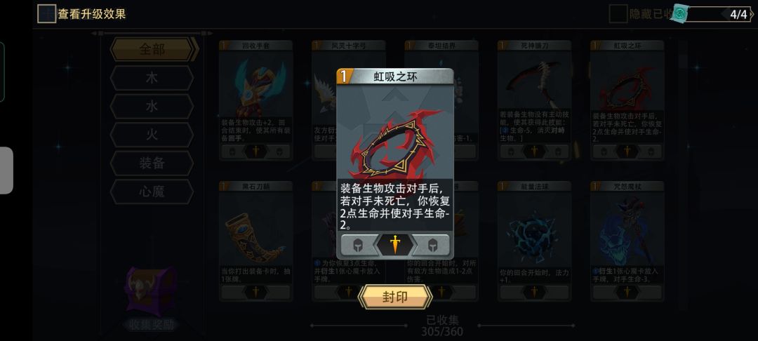 而又有一件装备【虹吸之环】装备生物攻击对手后,若对手未死亡,回复2点生命并使对手生命—2