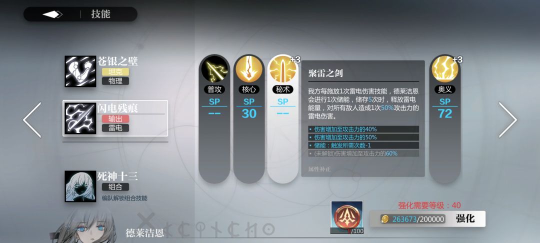重点就是这个技能,多段伤害只记一层,但是聚雷之剑也是可以叠加一层的。也就是说从第一次触发聚雷之剑开始,后续每四次雷电技能就可以触发一次。那么只要卡好被动层数即可在破盾输出回合打出三次聚雷之剑