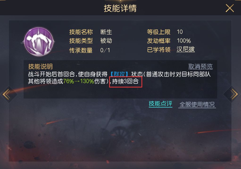 在征霸中每局对战最多可打满8个回合,而大多数将领在每回合只有1次释放技能与普攻的机会,所以将领释放技能越稳定、造成的伤害越高,就能获得更多对战优势。