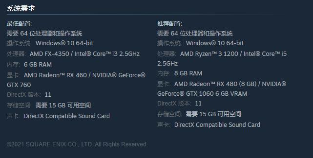 显卡: AMD Radeon™ RX 480 (8 GB) / NVIDIA® GeForce® GTX 1060 6 GB VRAM