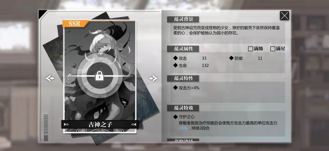 然后还一个用高星的ssr蕴灵 因为不知道他有什么高星的ssr 同级的话让他看蕴灵的属性加成 任意伤害大于攻击大于雷伤
