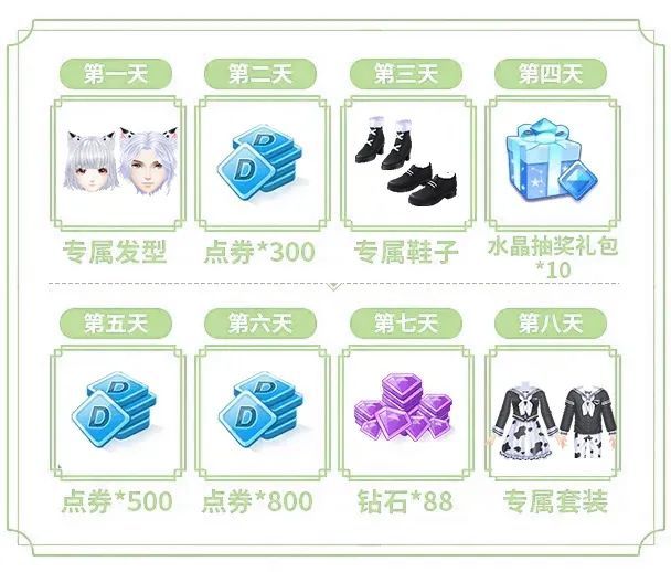 9月5日-9月26日期间,连续登录游戏即可带走可爱美衣-萌萌斑点组合装&88钻石&水晶礼包等好礼!