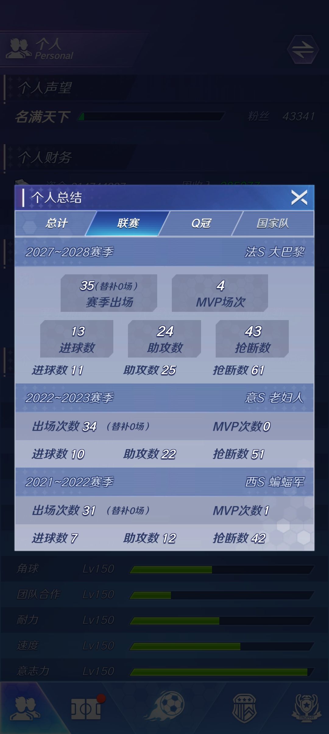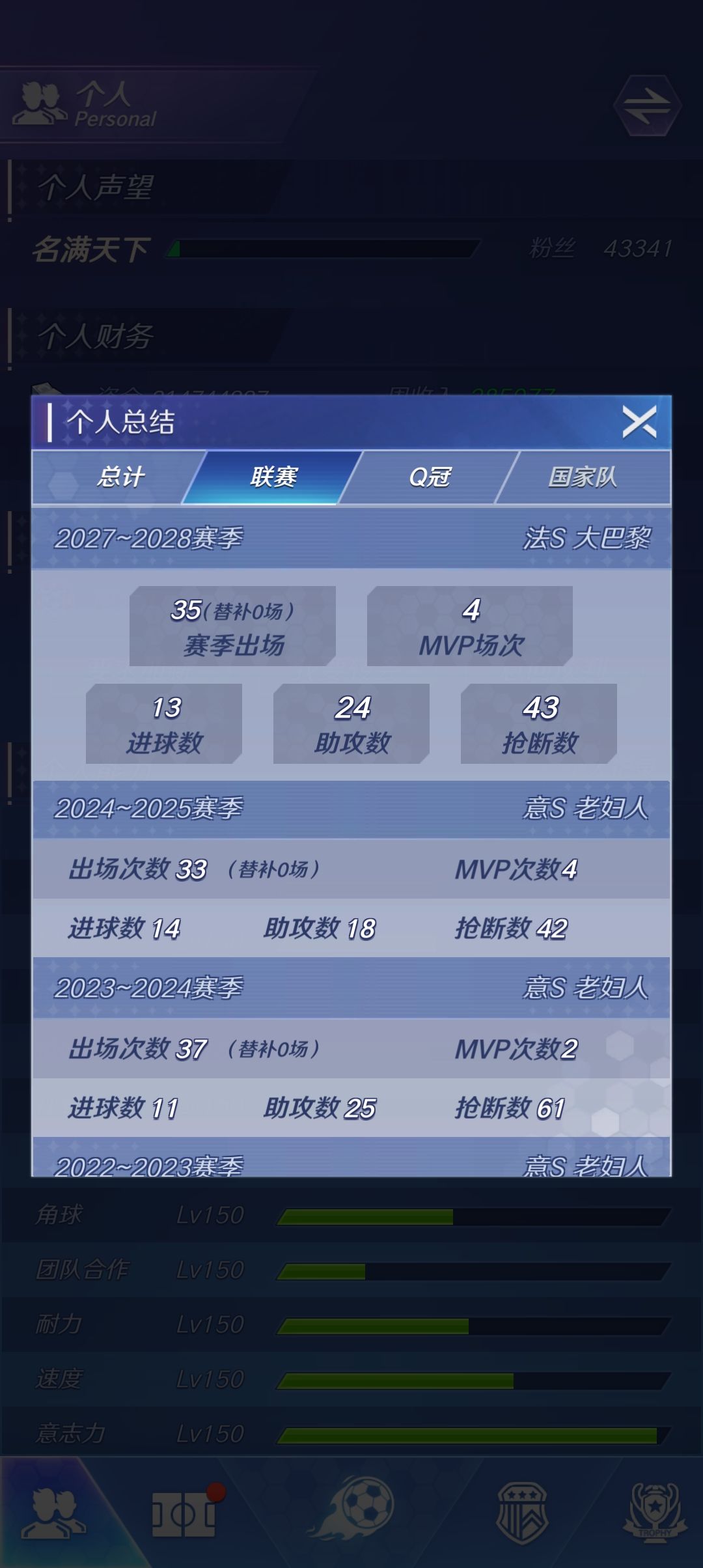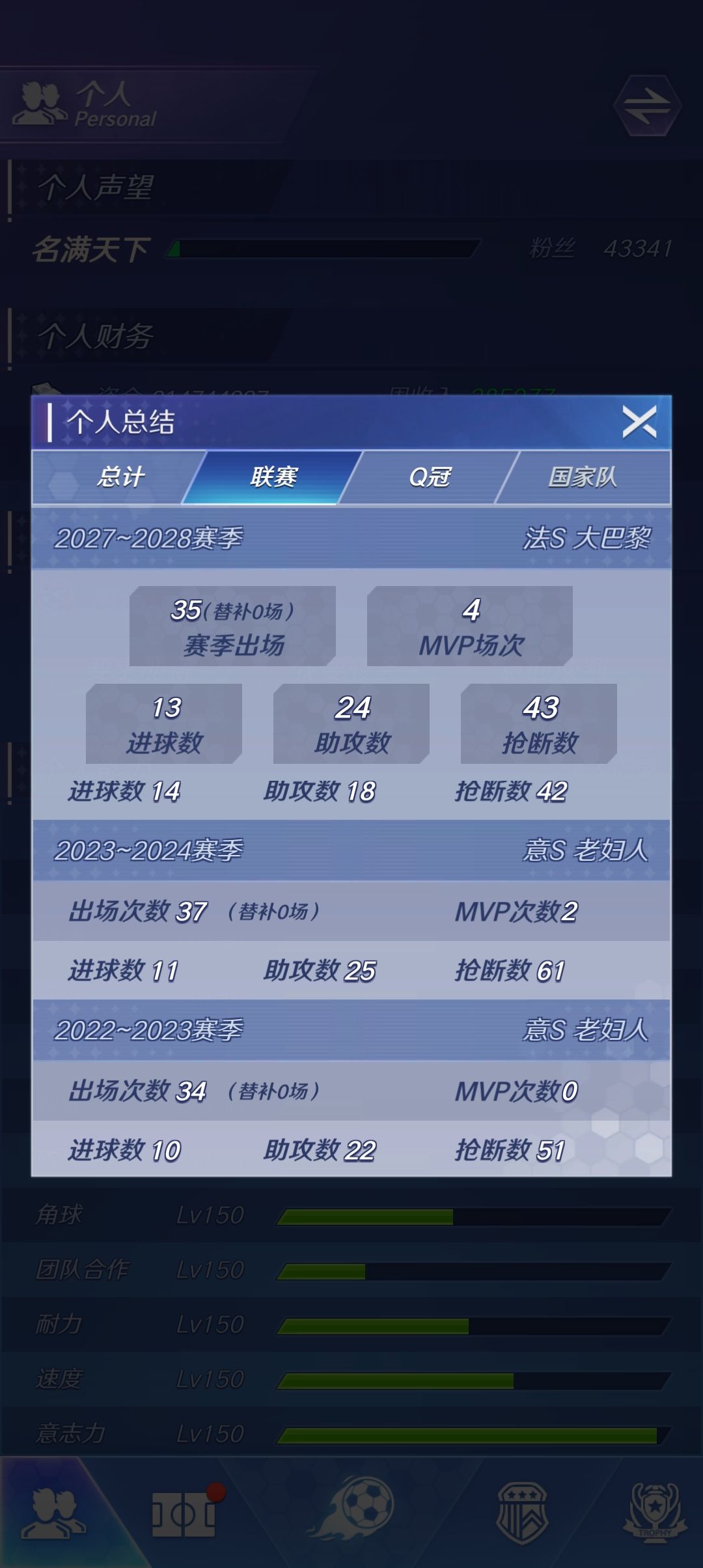 出道即巅峰,第一个赛季带领蝙蝠军团拿下西甲冠军,第二年夏天被带到尤文图斯,随后帮助尤文拿下三届意甲三连冠,可欧冠依然是零的突破,在意甲的第三个赛季结束后,随后大巴黎找上门来告诉我可以拿下欧冠,就这样我去了巴黎,开启了欧冠三连之路