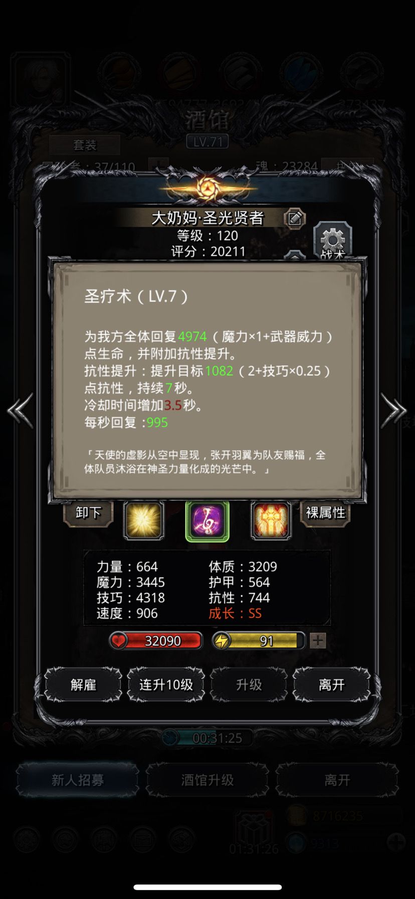 圣迹:莽子法师100、奶妈90、烈枪80。