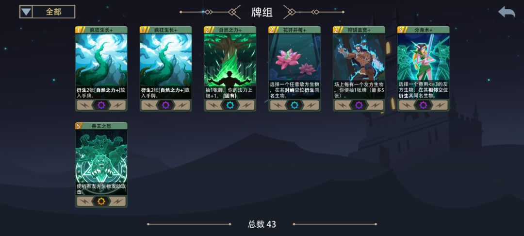 2特效卡: 花开并蒂*1,分身术*1,孕育生命*2,月魂秘术*1_2(生物卡多就少要,生物卡少就多要),分裂*1,疯狂生长*2_3,自然之力*1_2