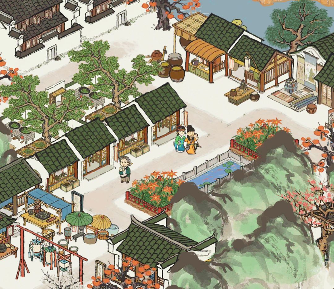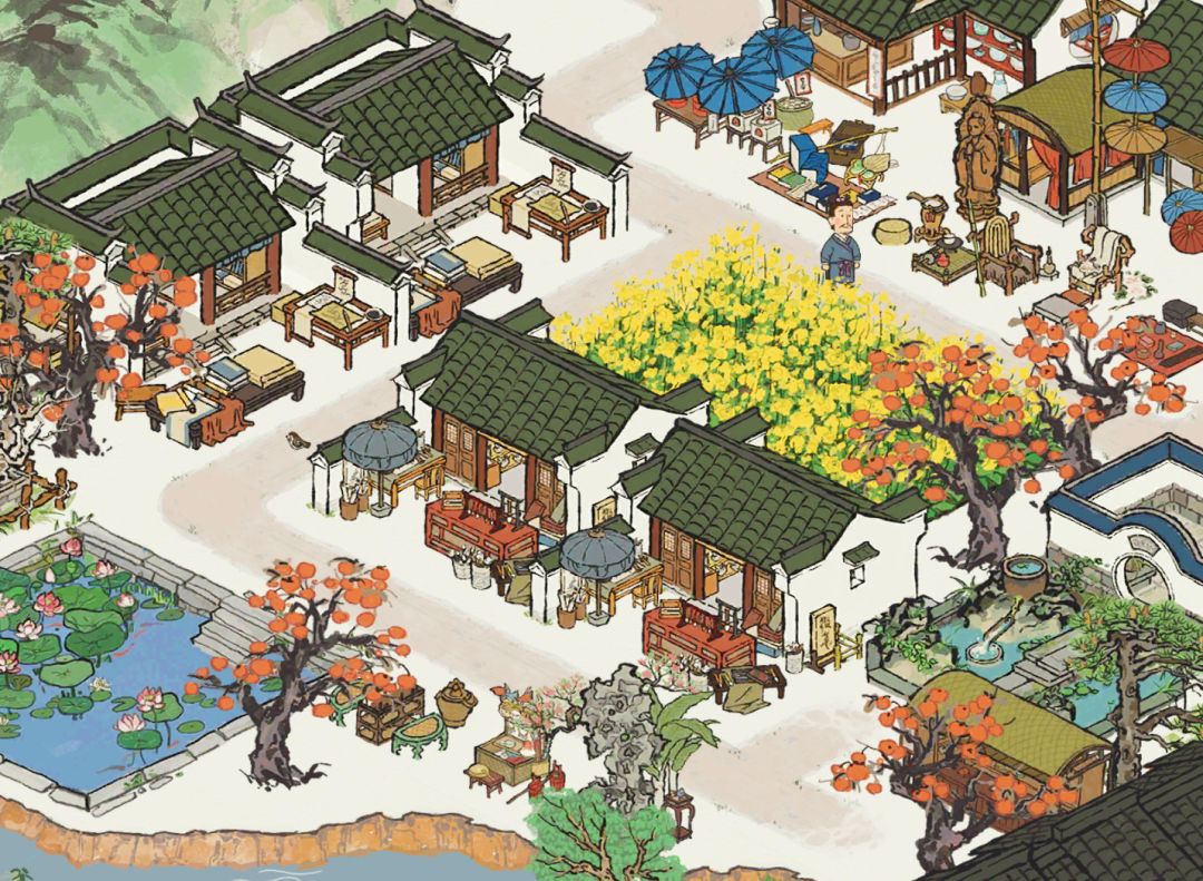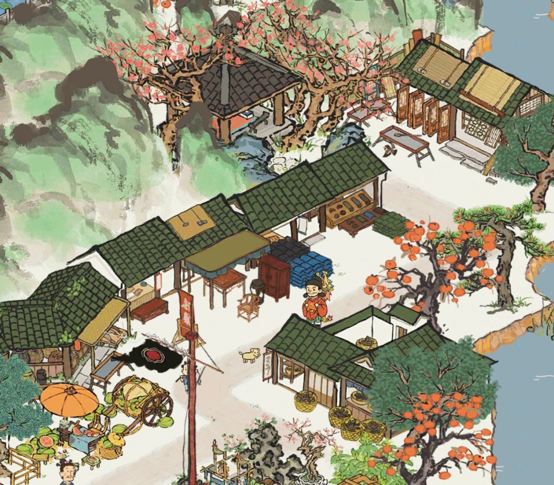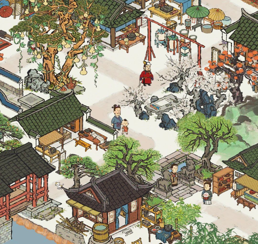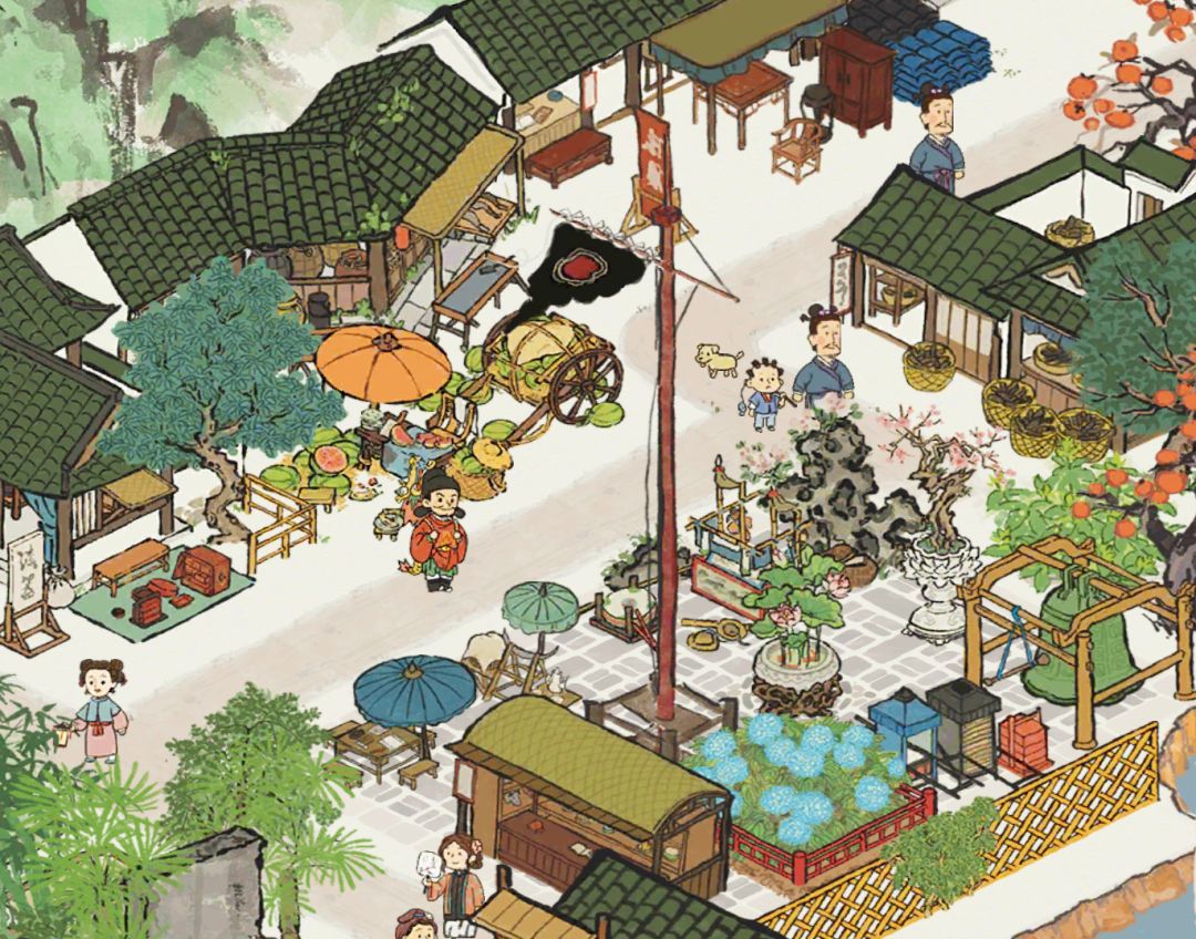 昨晚肝了两个小时,全部都是自己设计,终于把徽州府商业街摆好了。
