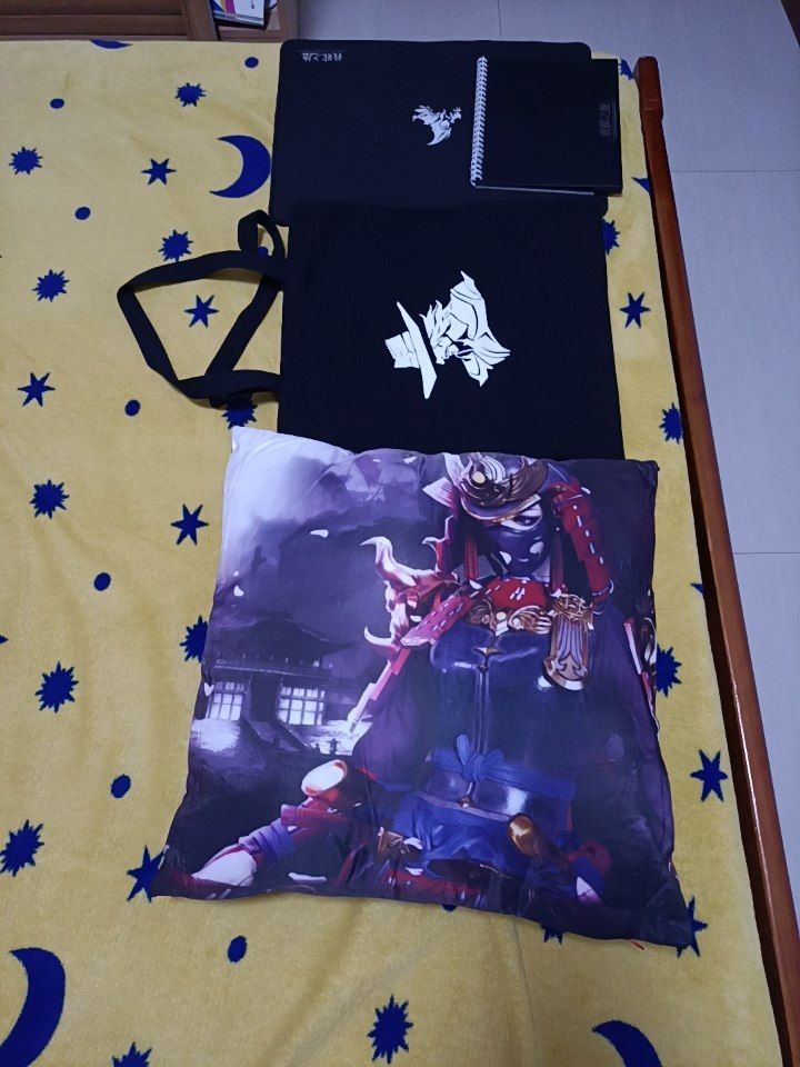 一个抱枕,一个包,一个日历,一个鼠标垫