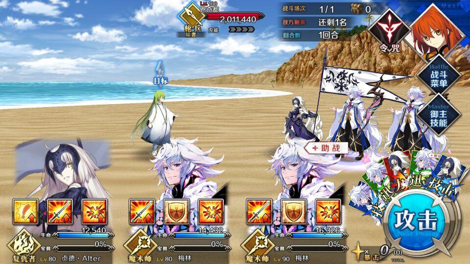 对方未“恩将仇报’的枪阶恩奇都2.000.000血,黑贞发牌1红1蓝