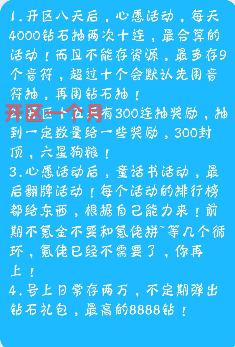 补充说明:开区15天后有一个升星活动,5星升10星有奖励,建议留一个需要的角色,备好狗粮!当然也可以9星回退一下再升也可以!