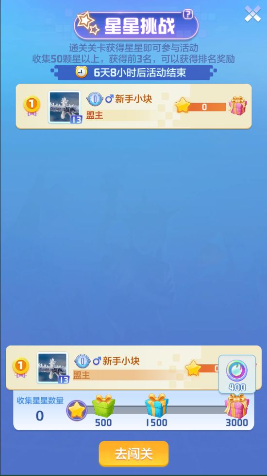 通关关卡收集3000颗星星(联盟内所有玩家星星总和),即可领取特趣思币*400