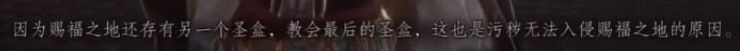 第六章、赐福之地。这一章的秘密和剧情实在牵扯太广,并且都有所解释。这里就不细讲,关于教宗、四神柱和两把圣剑我准备专门开一楼写。这里我就讲下两个小点,一是我们第一次遇见艾克哈特。我重新玩一遍他开口第一句话就震撼了我:呵呵,马吉安、德幕格和先驱者,赐福之地好久都没有这么热闹了。这一句话就暴露了艾克哈特的身份绝对不一般,要知道这个时候艾克哈特的幕后主使身份还没暴露,连诺伍德都不知道。如果真的像他所说只是一个人普通老头怎么可能会了解这些,这一句话的暗示太明显了。 第二个小点,黑手这件装备,介绍里说是某种马吉安人的仪式产生的,会不停抓取身边的一切物品。从图片和介绍上来看是不是和我们在基塔布打败融合的司布伦格后出现的黑雾中的许多手非常相似。如果说融合的司布伦格是耶库伯之印被特蕾莎意外启动而产生的,那黑手就是马吉安人通过研究学习耶库伯之印的力量,而产生的一个弱化版的效果。最后在我们完成艾克哈特的任务后,探索完四神柱在三圣所和他对话,他提到教宗一直在守护着圣盒,以防其中的诅咒(大致意思)第六章中的艾克哈特这个老狐狸的许多话都是不能尽信的,但肯定有真有假。这是全游戏第三次提到诅咒。这里我总结下三次提到诅咒的地方都是有耶库伯之印(圣盒)的地方,我猜测诅咒就是从耶库伯之印而来,后续有待进一步讨论。