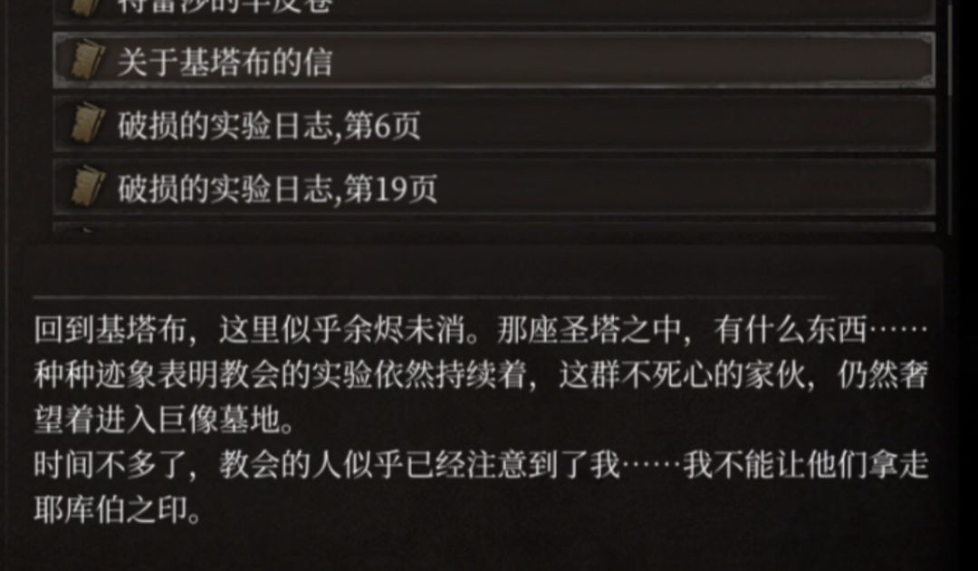 2、在基塔布的村落里有一个文献,叫村落里隐藏的匿名信,大致意思是:马上就有外人(教会)要来这里了,他们是为了某种目的(巨像墓地的秘密)来的,你们同不同意合作你们自己说了算,但是我告诉你们这关系到你们祖先繁荣昌盛的秘诀。 注意这封信是用马吉安人的文字写的,写这封信的人看似说同不同意都随你们但又将背后的巨大利益说出,更像是一种变相的引诱。谁会写这封信呢?首先可以排除教会,教会要写信没必要用匿名信,他们本就光明正大的去的,而且那时教会对马吉安人一点都不了解,也写不出来这封信。那艾克哈特的写这封信的可能就很大了,那这里就有一个疑点,为什么艾克哈特会了解到基塔布、马吉安人甚至能用马吉安人的文字。要知道连教会也是去到基塔布后才开始了解到马吉安人,艾克哈特是如何提前得知的。所以到这里我有一个大胆的猜想,还记得诺伍德的哥哥吗,他给了诺伍德一个硬币,一面是教会的标记一面是马吉安的。这可能说明诺伍德的哥哥是双重身份,既是马吉安人也是教会骑士。诺伍德的哥哥因为某些原因离开了基塔布流浪到了赐福之地并成为了一名教会成员。他被艾克哈特发现了不同寻常的身份,于是艾克哈特将其招入手下,并通过他了解到了基塔布、马吉安人和巨像墓地。在教会动身前往基塔布时,他提前写了这封信,以便教会在基塔布能顺利和马吉安人开展合作。后来马吉安人要被大ts,诺伍德的哥哥肯定不同意,可惜一个人的力量终究有限,于是他就像贝妮塔牺牲双眼保护特蕾莎一样,他向艾克哈特牺牲了自己来保护自己的弟弟诺伍德,并在临死前将硬币交给了诺伍德。死后艾克哈特将他的左手做成了一件强大的装备,诺伍德知道后为了拿回哥哥的手臂不惜将自己的左手砍下(强大的装备又不是只有这一件诺伍德没理由砍下手臂只为了这一件装备)。艾克哈特死去后诺伍德也说要将这个手臂带回故乡埋葬,如果这个手臂单单只是一个装备的话,诺伍德也不会这样做。这也解释了为什么一个是教会最神秘的主教,一个是马吉安的幸存者,两人竟然能搭上线,并且艾克哈特一早就知道诺伍德马吉安人的身份。不得不说,诺伍德是真的惨,想通过帮艾克哈特做事来引出他,却被艾克哈特利用了连背叛都在预料之中;和特蕾莎一起做局,没想到特蕾莎也只是巨像墓地的工具人,借他的计划将教宗手里的耶库伯之印回收了。幸好泰伦斯即时救场打败了艾克哈特,否则诺伍德真的是到头来一场空了。