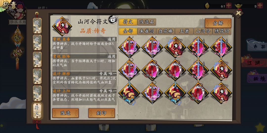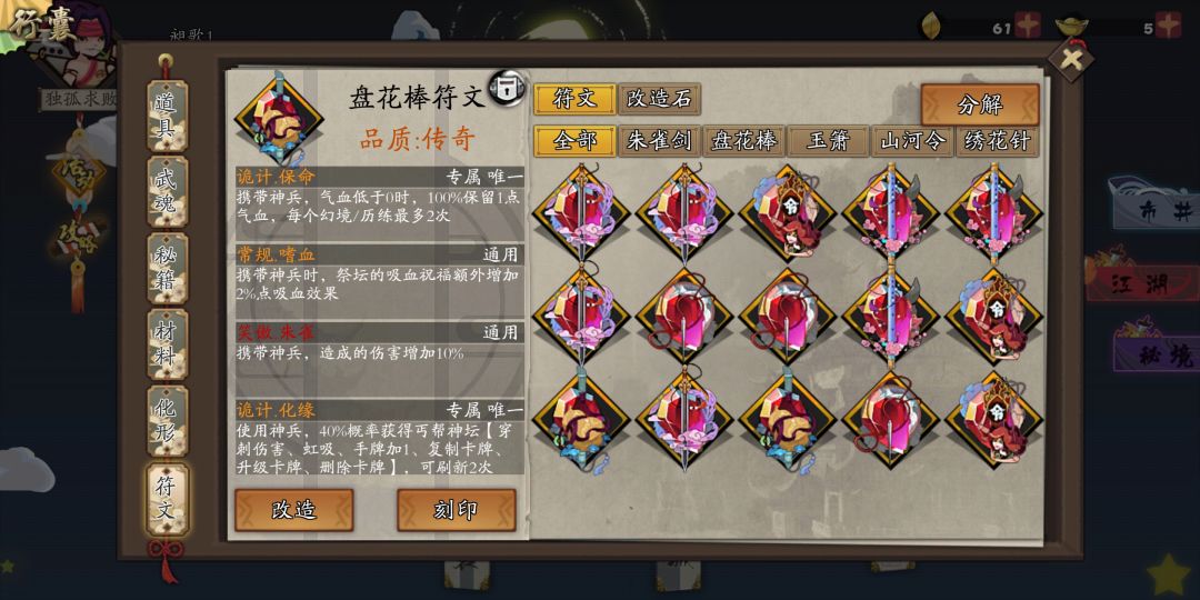 除了南疆圣僧觉醒和缥缈仙子其他全五星红化不缺,符文差不多这样了,咋打711巅峰秘境哦@一念大佬