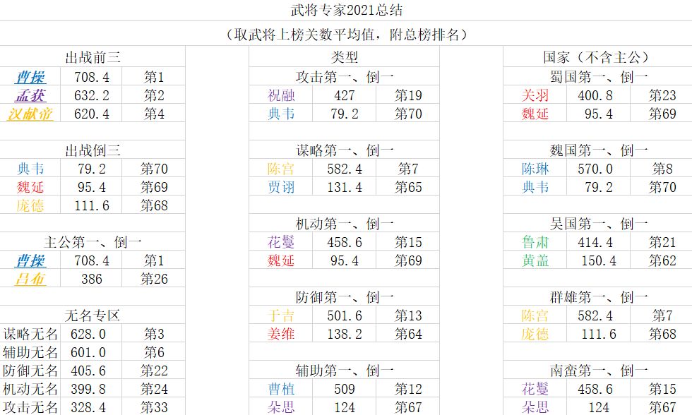 根据势力和类型做了两张表,基本可以反应武将的热门度,一定程度反应武将强度。(受顶端大佬选将影响,仅供参考)