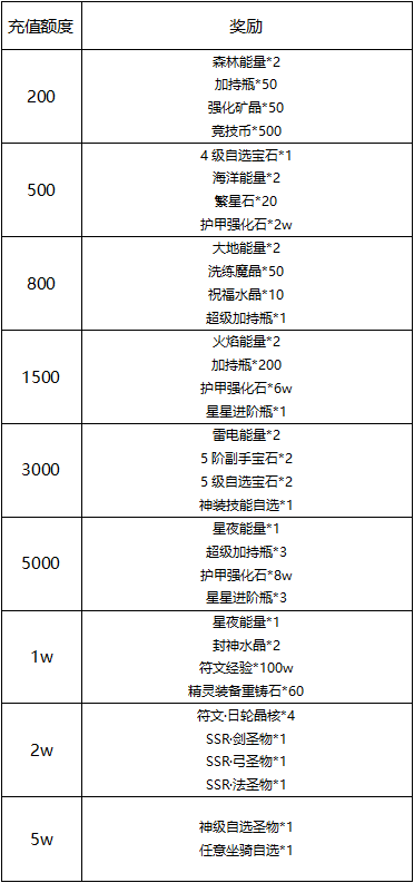 2,充值礼包达到最高档奖励可联系客服提前发放;