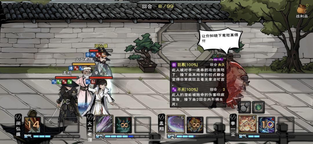 公公 高攻击 高闪避 高miss反击 但很脆 请带上暗器 如意珠 可以降低难度