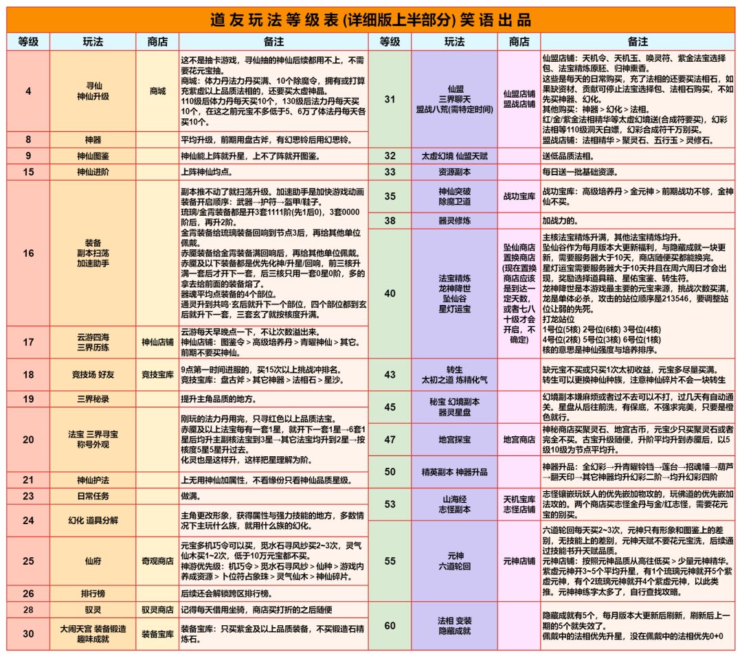 本应该是最长最重要的一个篇幅,全集中在表里了,里面有很多基础的东西,一定要仔细看!一定要仔细看!一定要仔细看!看不清的保存在相册观看,一键助手设置与万仙阵答案放最下面了。