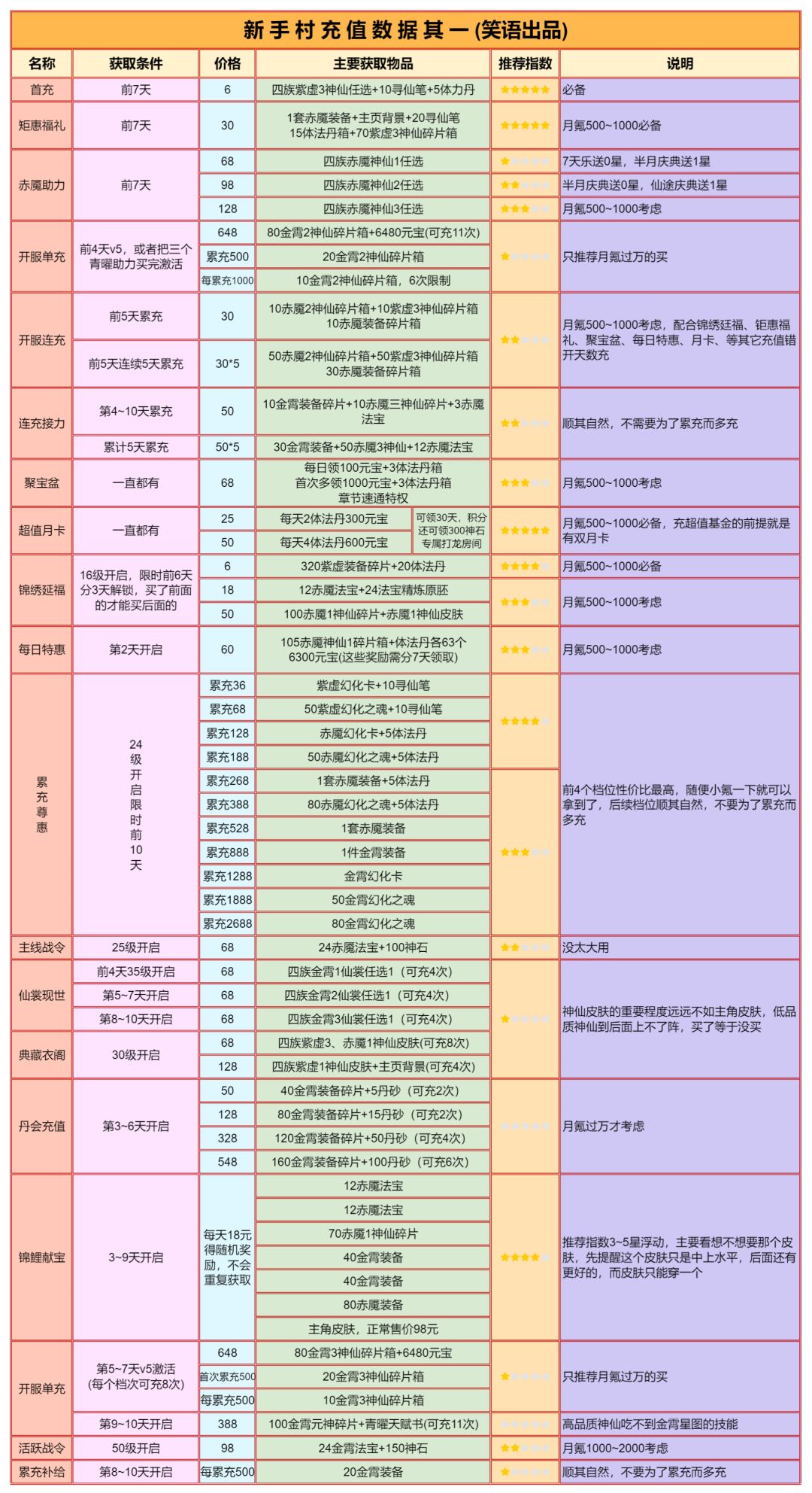 前面说过品质排序是曦幻>琉璃>金霄>赤魇>紫虚>青曜>幻彩>紫金,如果不算法相这个村内外都是第一性价比的,村里充5000还不如村外充1000。