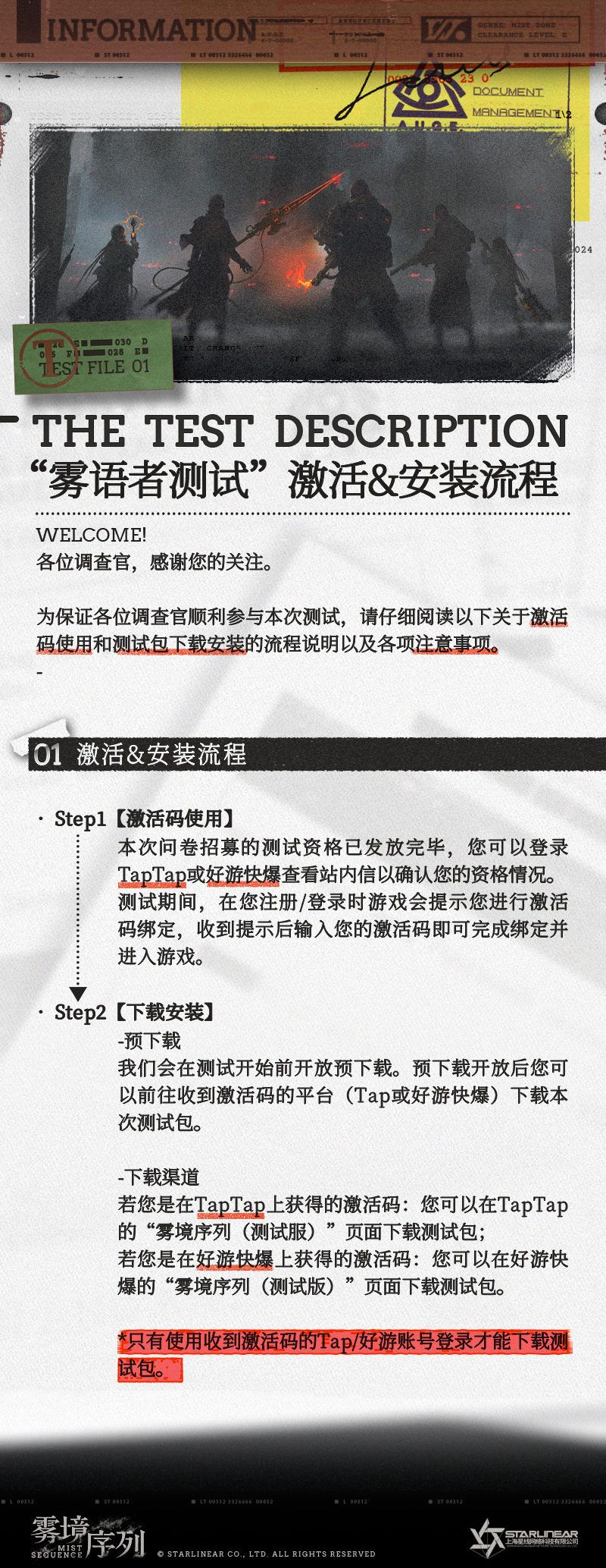 为保证各位调查官顺利参与本次测试,请仔细阅读以下关于激活码使用和测试包下载安装的流程说明以及各项注意事项。
