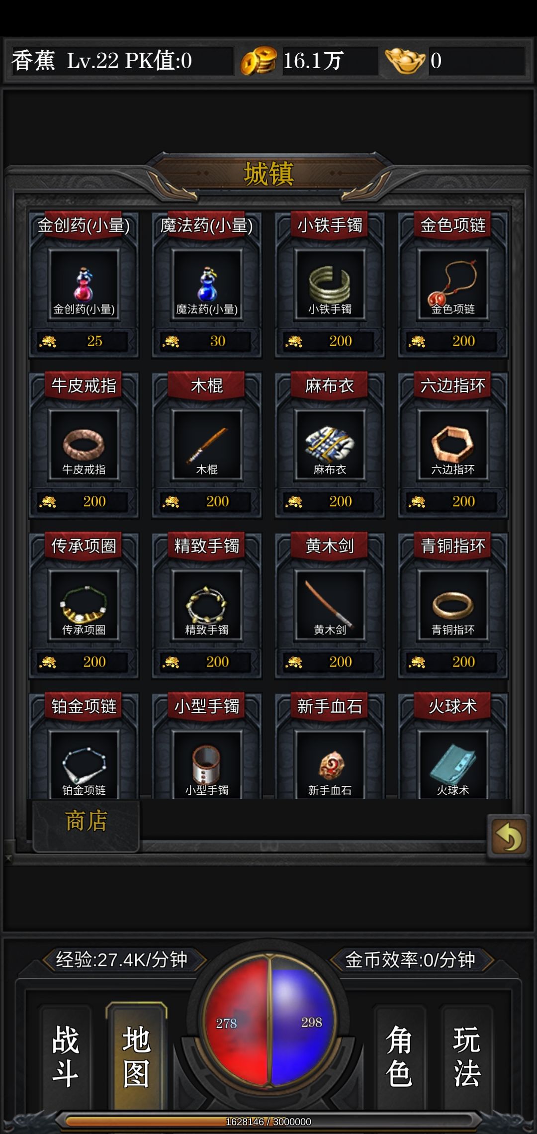 到5级你就进入了比奇城野外副本也是如上刷等级搞装备,这时候你就疑问了新手给的17级武器,跟那么多魔血石+1是干什么的接下来香蕉来告诉你,你首先点开右下角的玩法(邮件成就之类的都在玩法里面)会有个合成装备如图所示