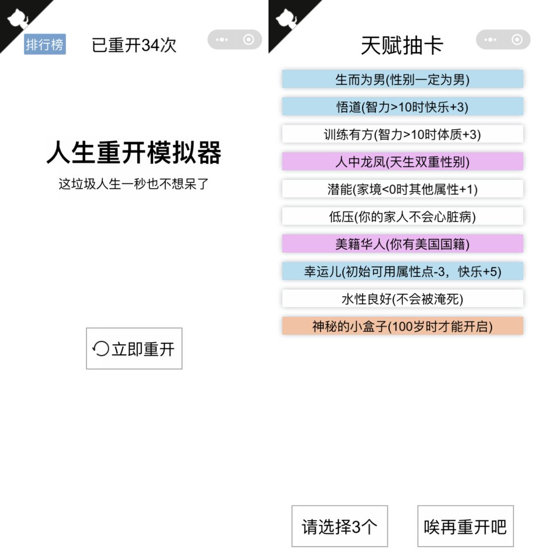 开局随机给一些可分配点数,根据你的分配,展开不同人生。只是,有些人生过于离谱......