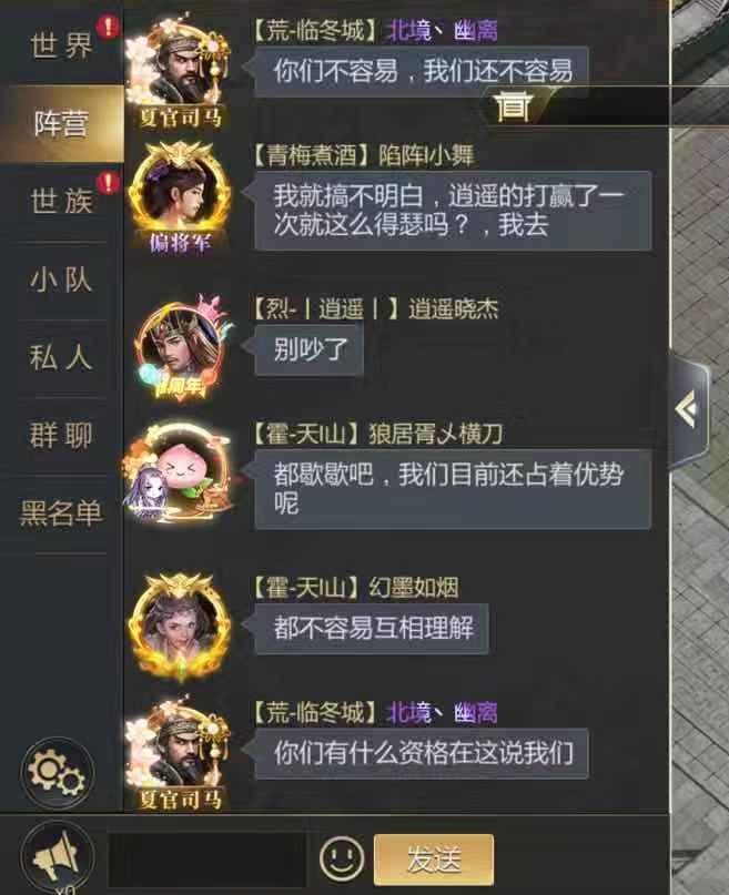 第一点:逍遥狗比一落地就骂临冬城青梅两个世族,而且我们天山也进行的劝架,但大家本属同一阵营下,相煎何太急啊