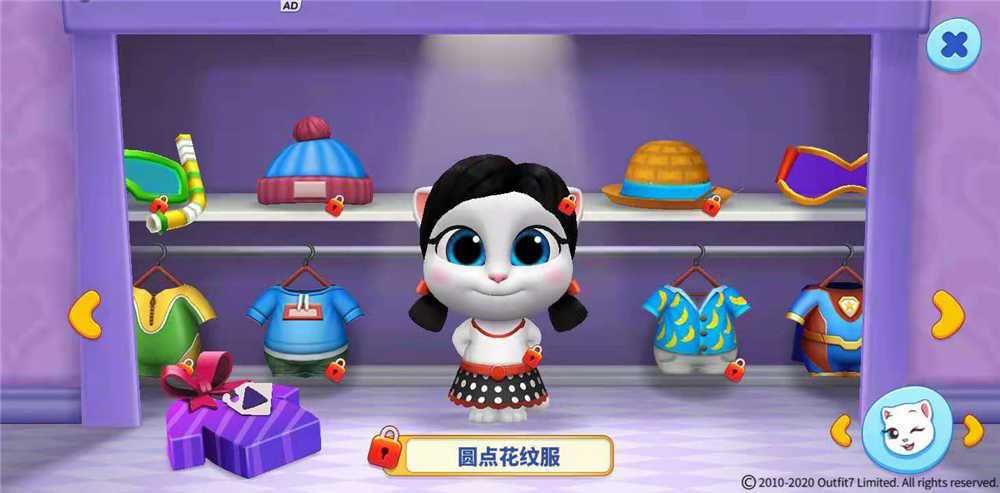 安吉拉十分甜美可爱,但总觉得缺少了点淳朴气息。用圆点花纹服刚好就把它潜在的淳朴风带了出来,黑色的长辫子,很有村花风范。主要是纯白色的皮毛让人不得不爱啊。