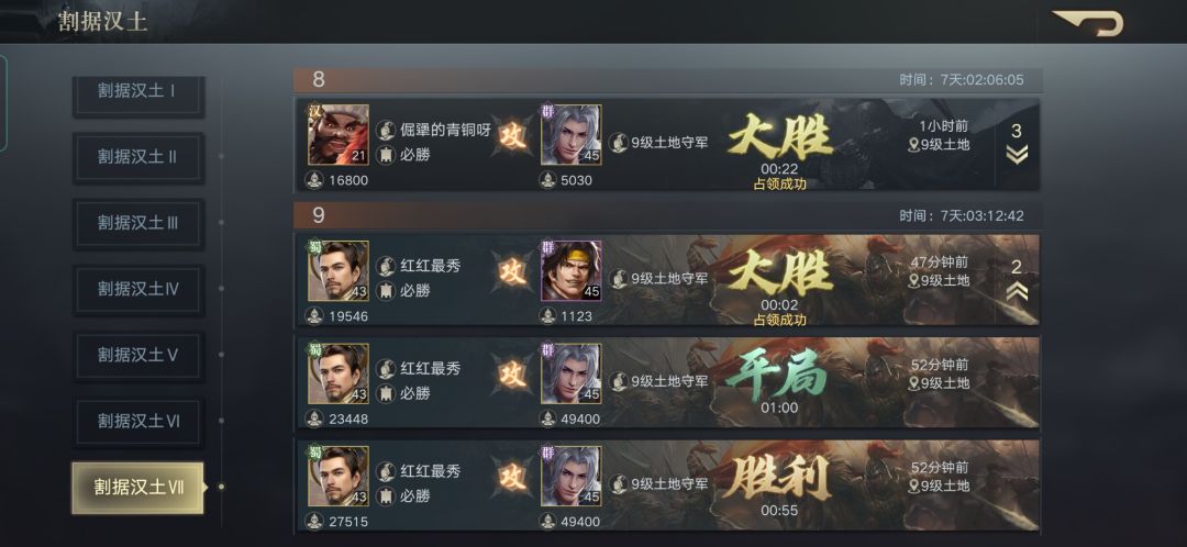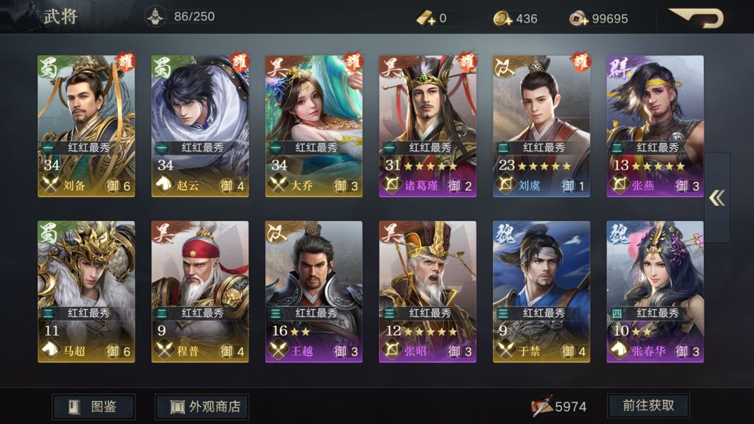 看得出,很明显我用的最多的武将是5个