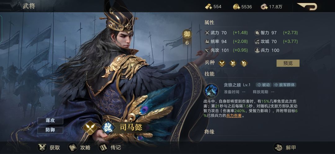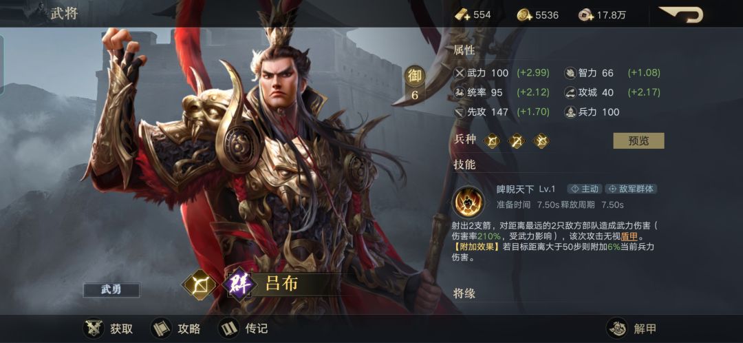 武力成长和技能伤害都很高,唯一一个无视护盾的将,