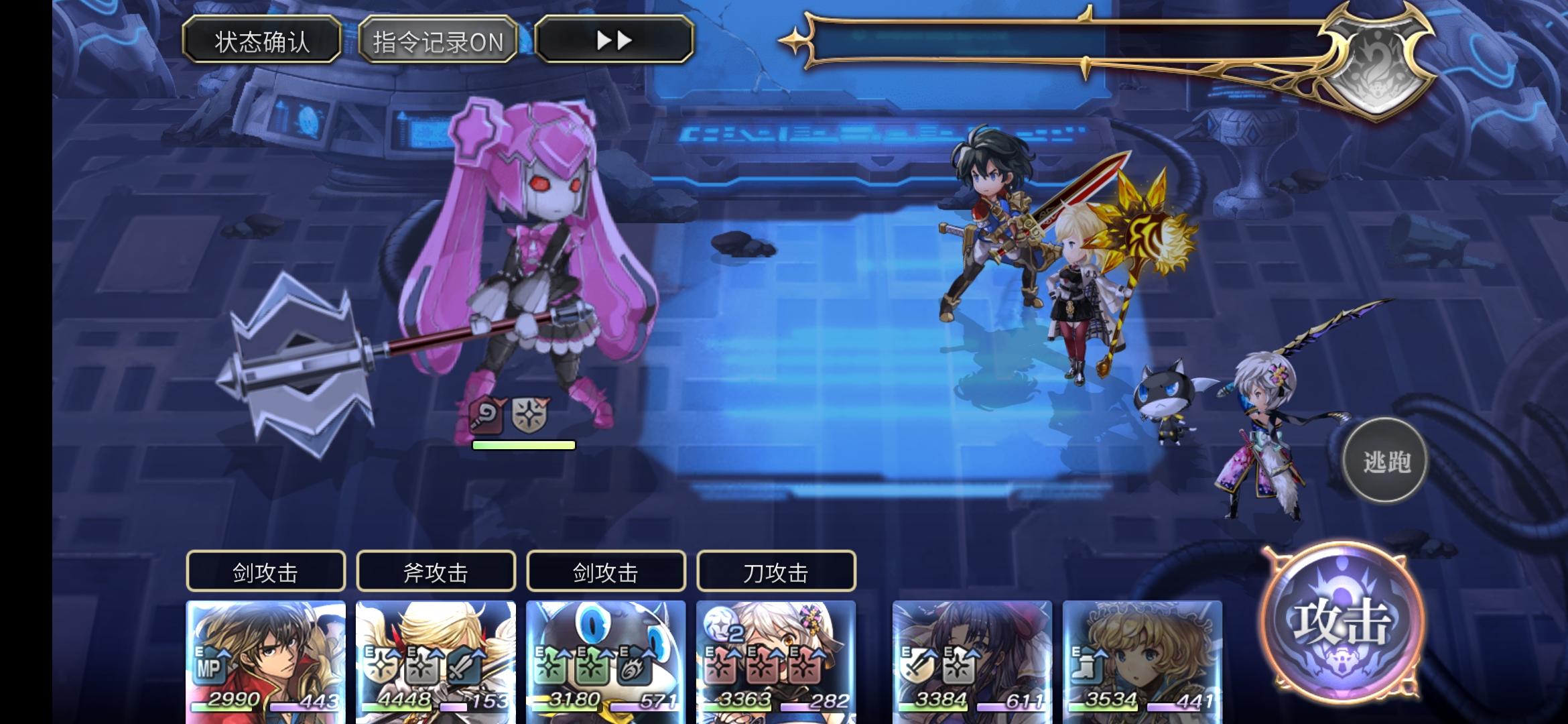 因为不清楚BOSS的行动规律,所以第一回合由奈降力,玛丽上元素盾。莲莉和茜负责主输出,替补看情况上(要AF输出时就替换由奈和玛丽)。