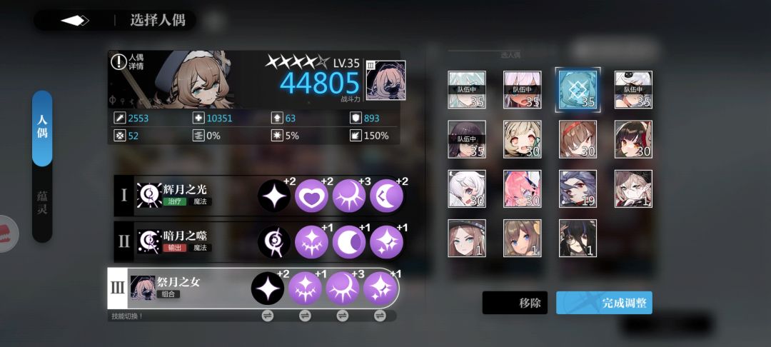 星见有一个减防的二技能二级就可以减30%,三级可以驱散一个敌人buff,加上薇姬娜大招20%的减防,可以让莉莉输出拉到最大。这样莉莉在第三回合和第四回合的输出就会最大化,同时星见也必须凹出一个暴击。